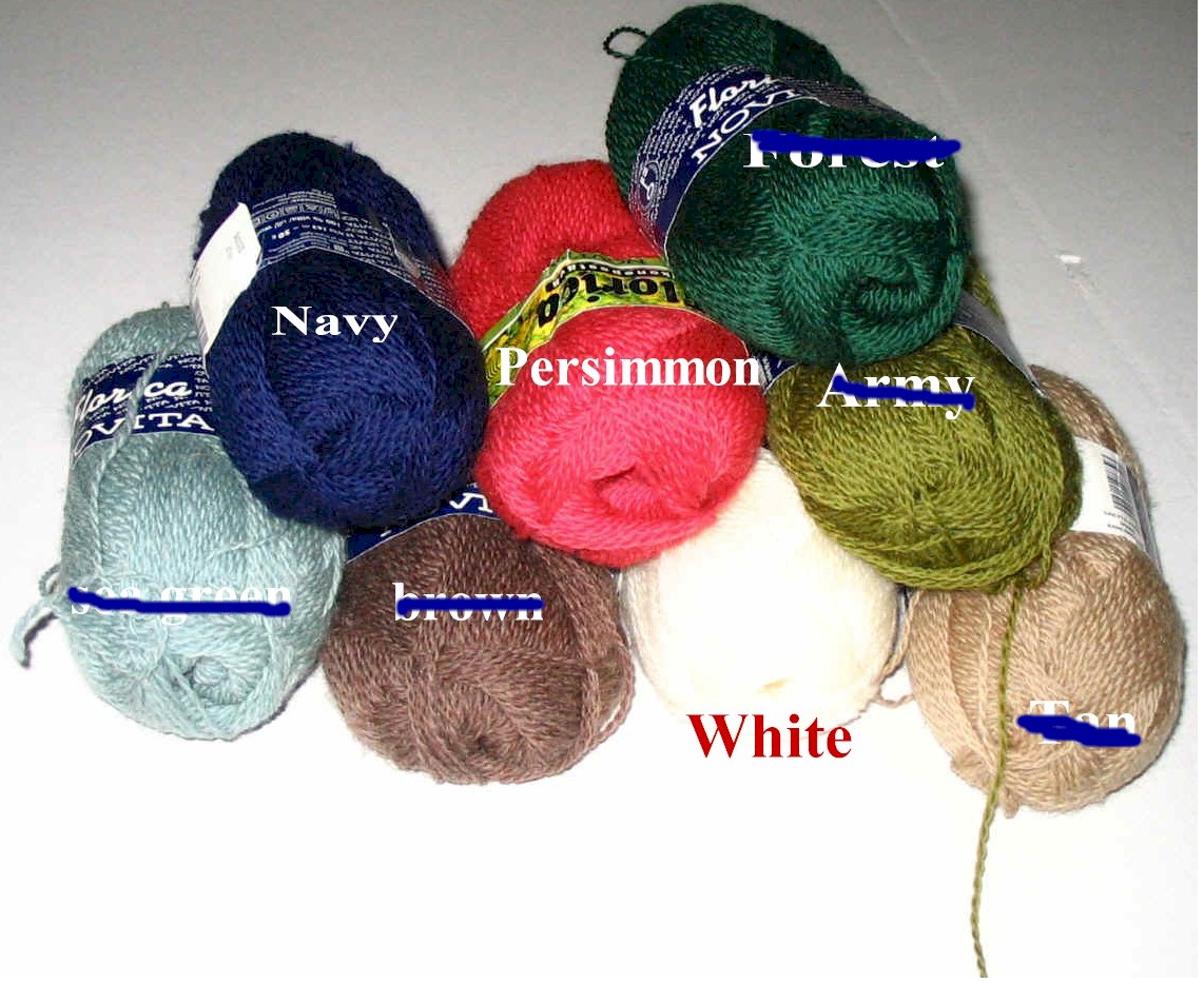 | 60% Acrylic, 40% Nylon | Only those marked with a red X are in stock. Limited to stock on HAND! | |