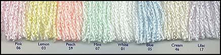 98% Acrylic, 2% Nylon Colors in stock:  #01- 7 balls                     The following colors only have ONE LEFT each!  #07- 1ball, #59- 1ball.